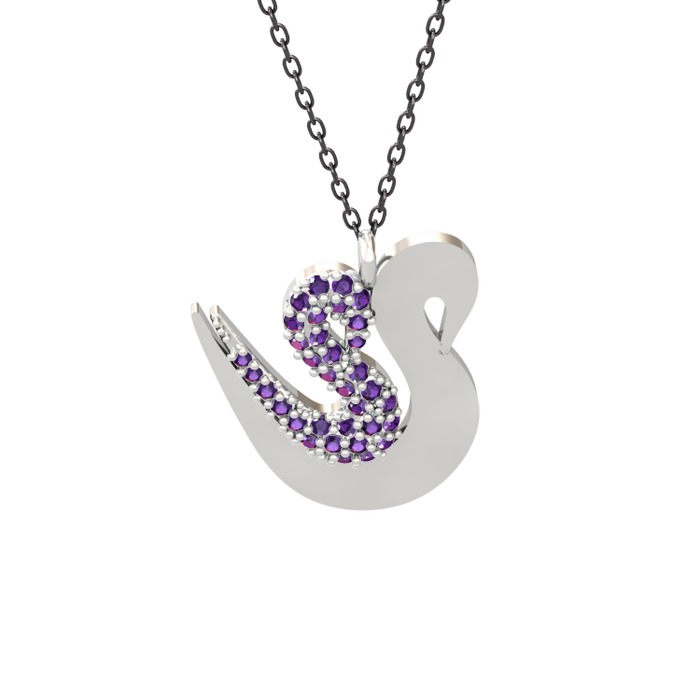 Ametist 18 ayar beyaz altın kolye (40 cm gümüş rolo zincir)