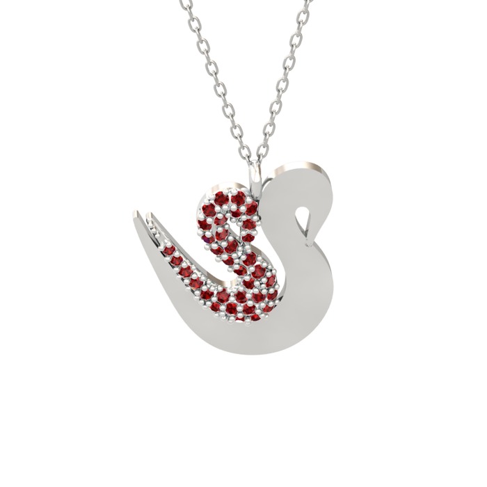 Garnet 14 ayar beyaz altın kolye (40 cm beyaz altın rolo zincir)