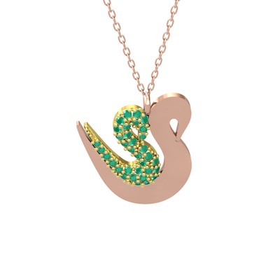 Kök zümrüt 8 ayar altın kolye (40 cm rose altın rolo zincir)