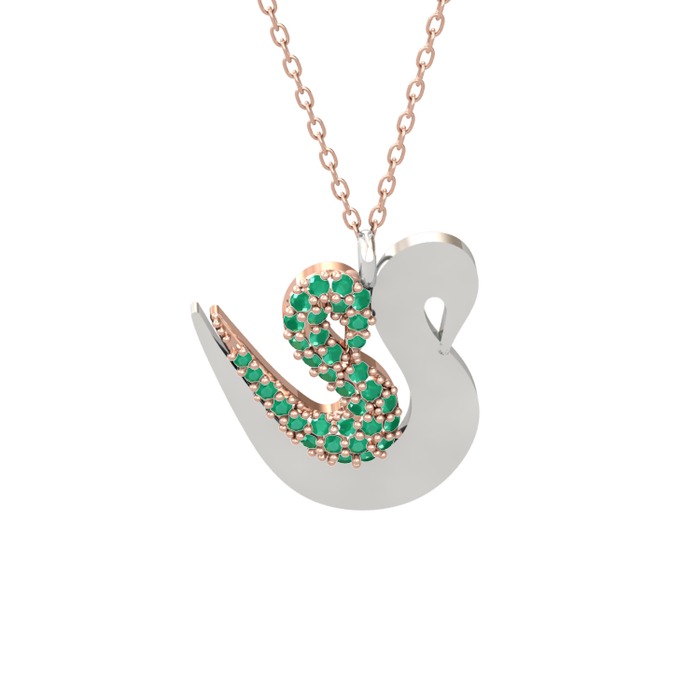 Kök zümrüt 8 ayar rose altın kolye (40 cm rose altın rolo zincir)