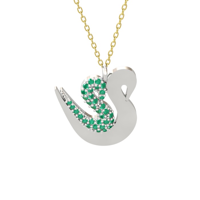 Kök zümrüt 925 ayar gümüş kolye (40 cm altın rolo zincir)
