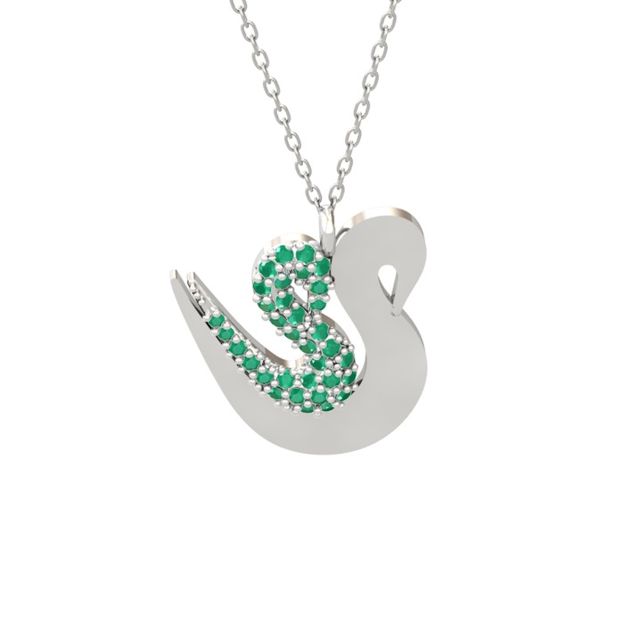 Kök zümrüt 925 ayar gümüş kolye (40 cm beyaz altın rolo zincir)