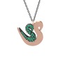 İkili Kuğu Kolye - Kök zümrüt 925 ayar siyah rodyum kaplama gümüş kolye (40 cm gümüş rolo zincir)