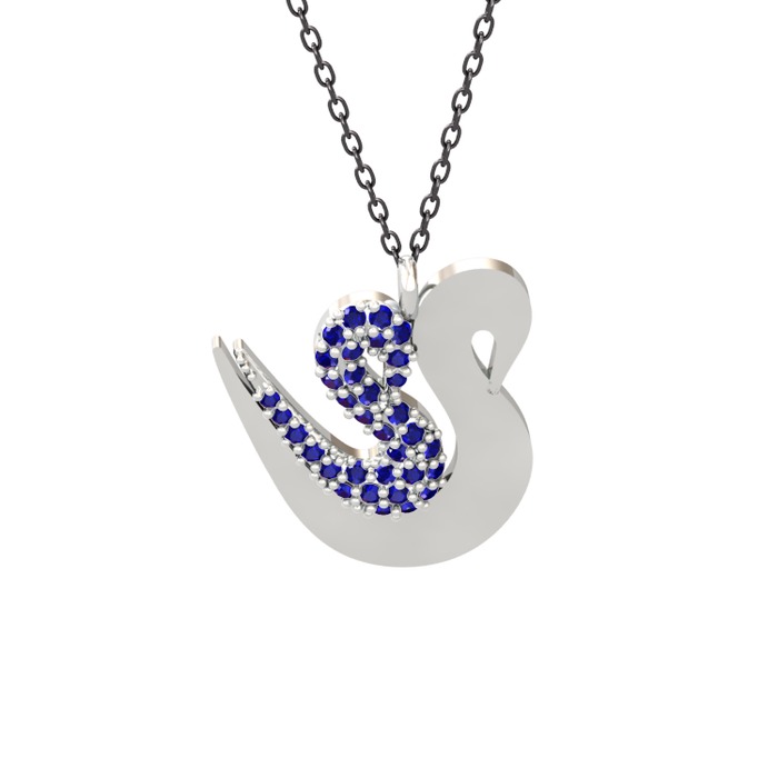 Lab safir 18 ayar beyaz altın kolye (40 cm gümüş rolo zincir)