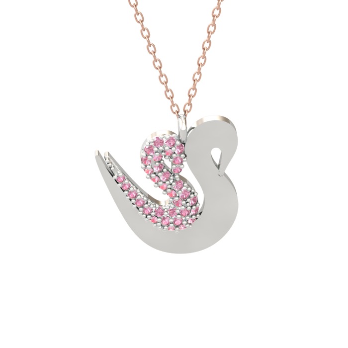 Pembe kuvars 18 ayar beyaz altın kolye (40 cm rose altın rolo zincir)