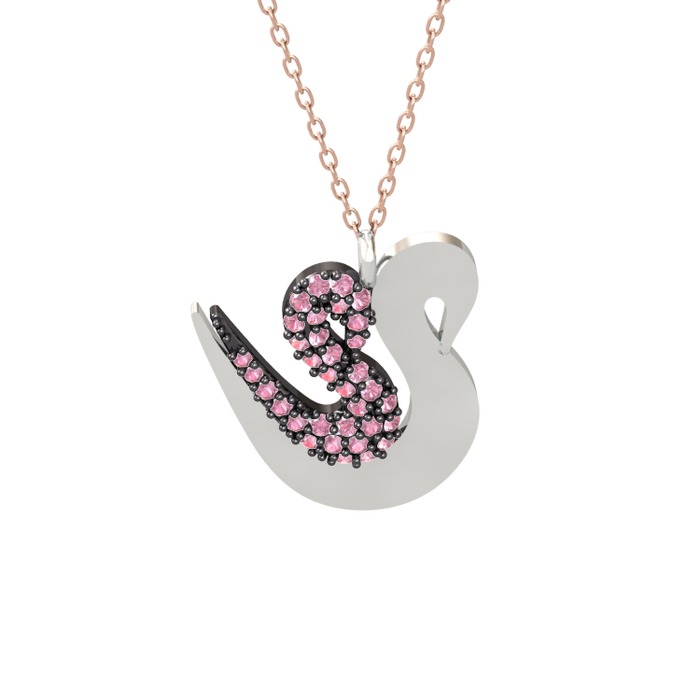 Pembe kuvars 925 ayar siyah rodyum kaplama gümüş kolye (40 cm gümüş rolo zincir)