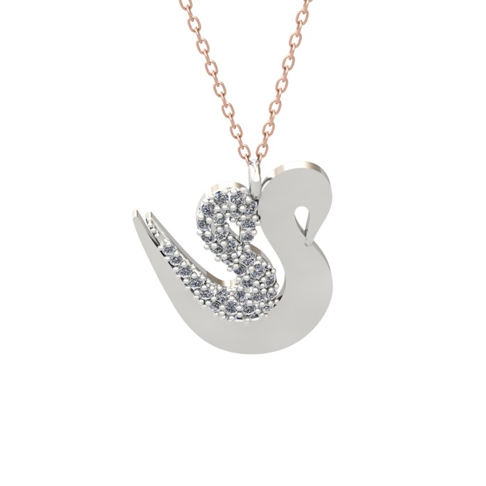Pırlanta 8 ayar beyaz altın kolye (0.429 karat, 40 cm rose altın rolo zincir)
