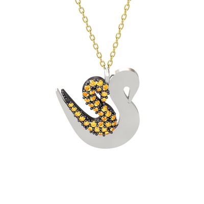 Sitrin 925 ayar siyah rodyum kaplama gümüş kolye (40 cm gümüş rolo zincir)