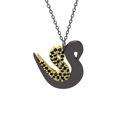 Siyah zirkon 14 ayar altın kolye (40 cm gümüş rolo zincir)