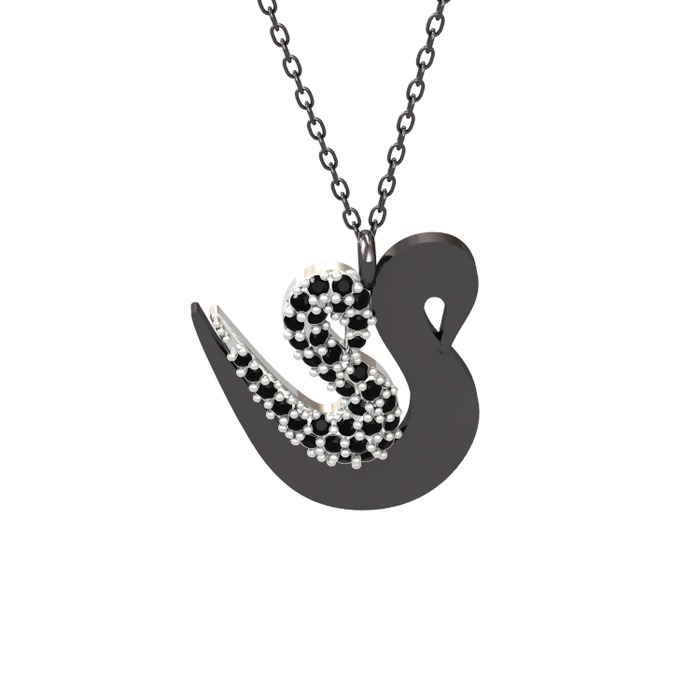 Siyah zirkon 14 ayar beyaz altın kolye (40 cm gümüş rolo zincir)
