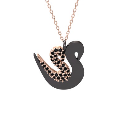 Siyah zirkon 14 ayar rose altın kolye (40 cm gümüş rolo zincir)