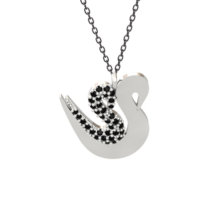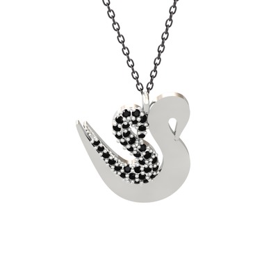 Siyah zirkon 18 ayar beyaz altın kolye (40 cm gümüş rolo zincir)