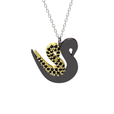 Siyah zirkon 8 ayar altın kolye (40 cm beyaz altın rolo zincir)