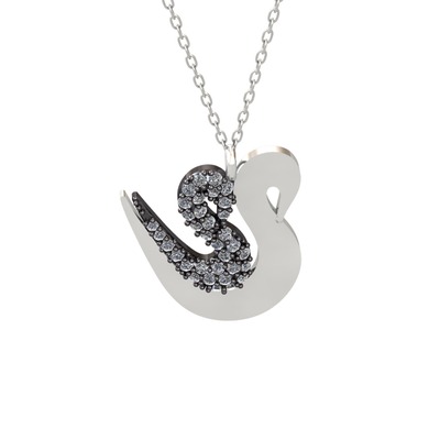 Swarovski 925 ayar siyah rodyum kaplama gümüş kolye (40 cm beyaz altın rolo zincir)