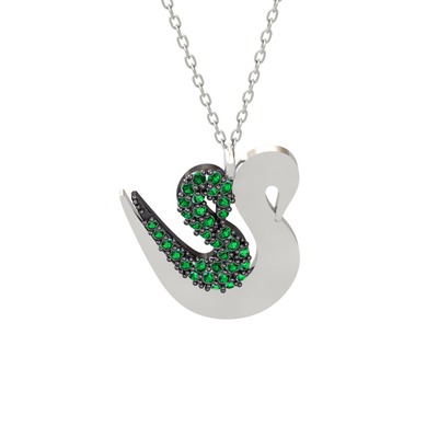 Yeşil kuvars 925 ayar siyah rodyum kaplama gümüş kolye (40 cm beyaz altın rolo zincir)