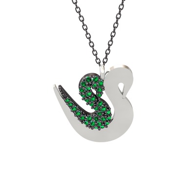 Yeşil kuvars 925 ayar siyah rodyum kaplama gümüş kolye (40 cm gümüş rolo zincir)
