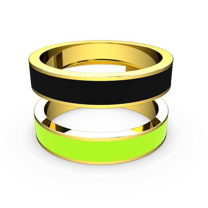 İkili Mine Yüzük - 925 ayar altın kaplama gümüş yüzük (Neon yeşil mineli)