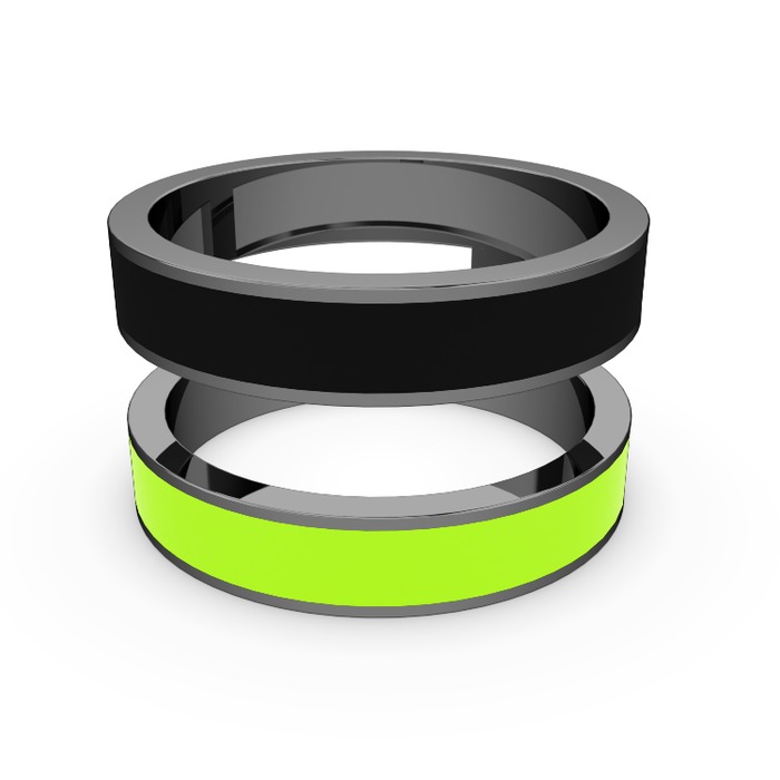 925 ayar siyah rodyum kaplama gümüş yüzük (Neon yeşil mineli)