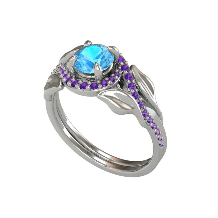 Akuamarin ve ametist 925 ayar gümüş yüzük