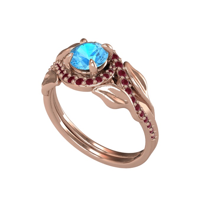 Akuamarin ve kök yakut 18 ayar rose altın yüzük