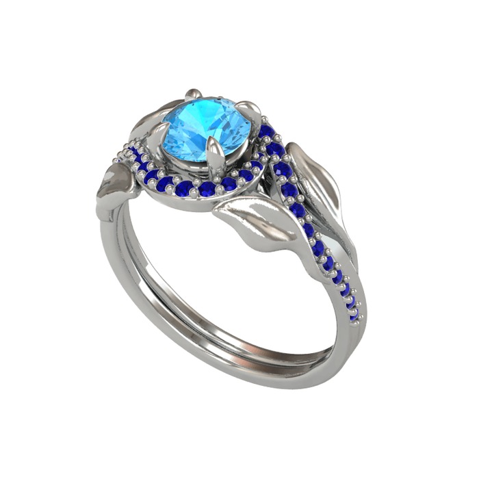 Akuamarin ve lab safir 18 ayar beyaz altın yüzük