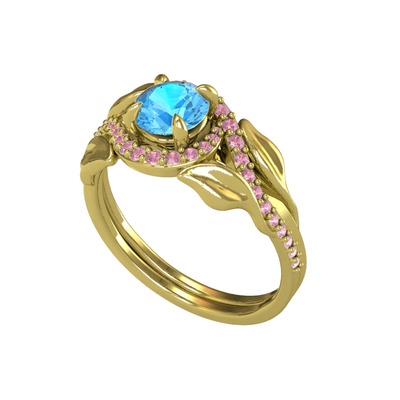 Akuamarin ve pembe kuvars 14 ayar altın yüzük