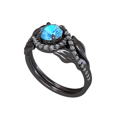 Akuamarin ve swarovski 925 ayar siyah rodyum kaplama gümüş yüzük
