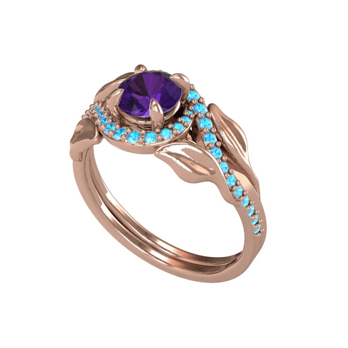 Ametist ve akuamarin 8 ayar rose altın yüzük