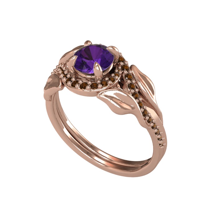 Ametist ve dumanlı kuvars 18 ayar rose altın yüzük