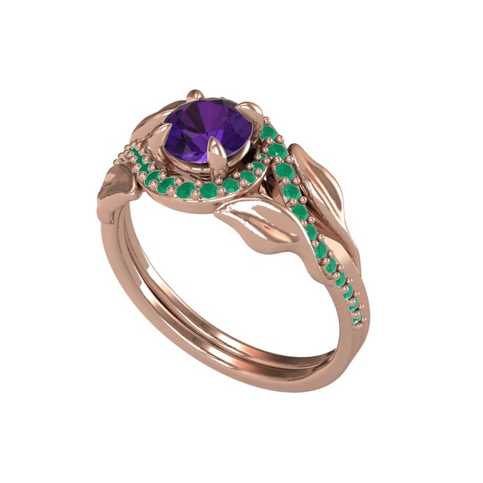 Ametist ve kök zümrüt 8 ayar rose altın yüzük