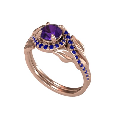 Ametist ve lab safir 14 ayar rose altın yüzük
