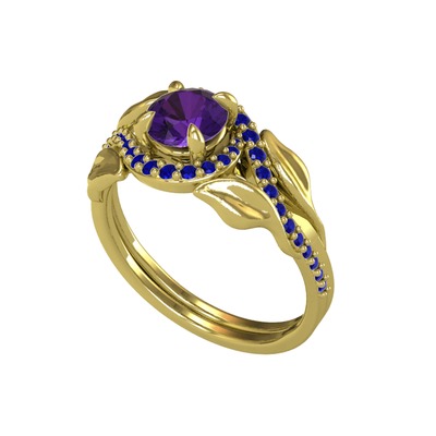 Ametist ve lab safir 925 ayar altın kaplama gümüş yüzük