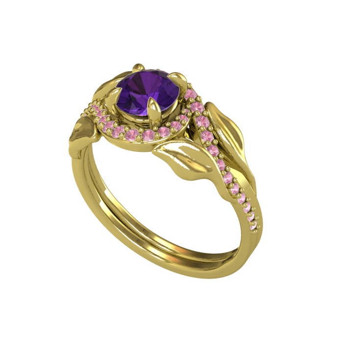 Ametist ve pembe kuvars 18 ayar altın yüzük