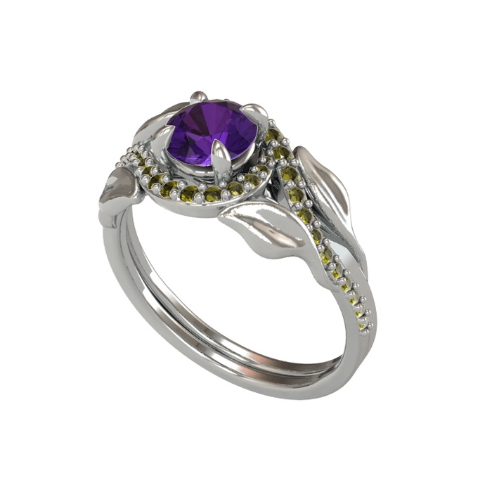 Ametist ve peridot 8 ayar beyaz altın yüzük