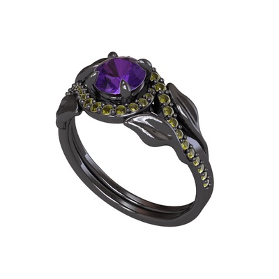 Ametist ve peridot 925 ayar siyah rodyum kaplama gümüş yüzük
