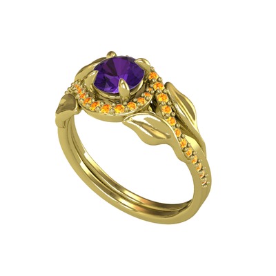Ametist ve sitrin 14 ayar altın yüzük