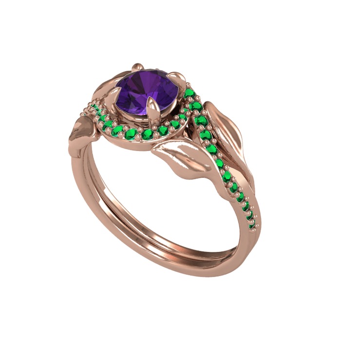 Ametist ve yeşil kuvars 14 ayar rose altın yüzük