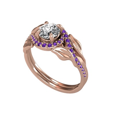 Beyaz zirkon ve ametist 8 ayar rose altın yüzük