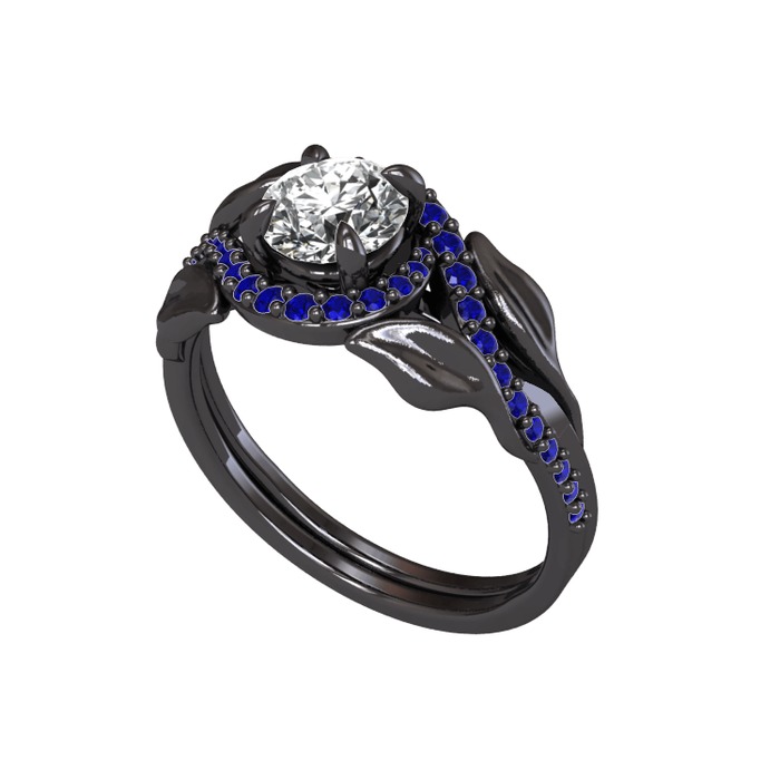 Beyaz zirkon ve lab safir 925 ayar siyah rodyum kaplama gümüş yüzük