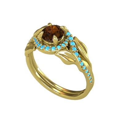 Dumanlı kuvars ve akuamarin 925 ayar altın kaplama gümüş yüzük