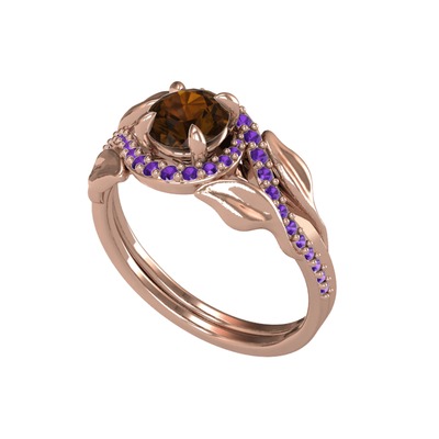 Dumanlı kuvars ve ametist 14 ayar rose altın yüzük
