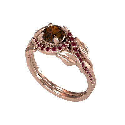Dumanlı kuvars ve kök yakut 8 ayar rose altın yüzük