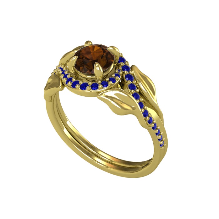 Dumanlı kuvars ve lab safir 8 ayar altın yüzük