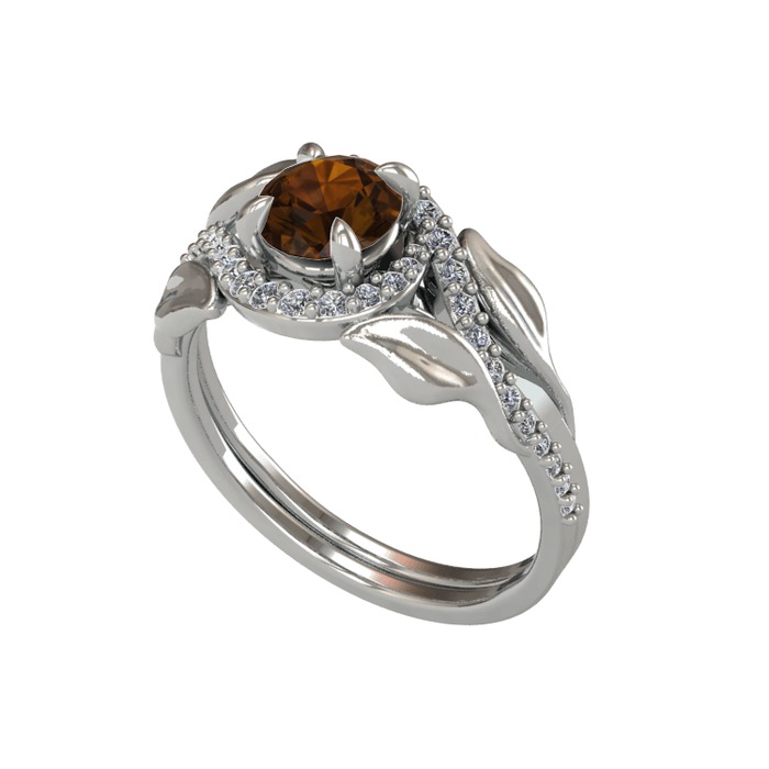 Dumanlı kuvars ve pırlanta 8 ayar beyaz altın yüzük (0.76 karat)