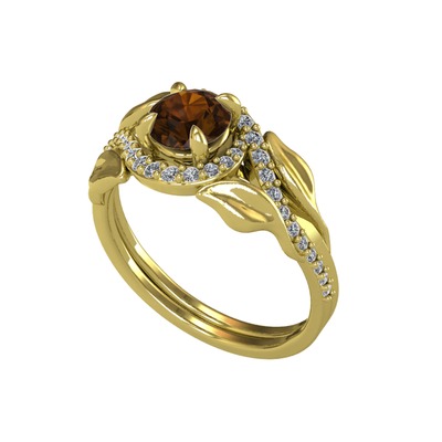 Dumanlı kuvars ve pırlanta 925 ayar altın kaplama gümüş yüzük (0.76 karat)
