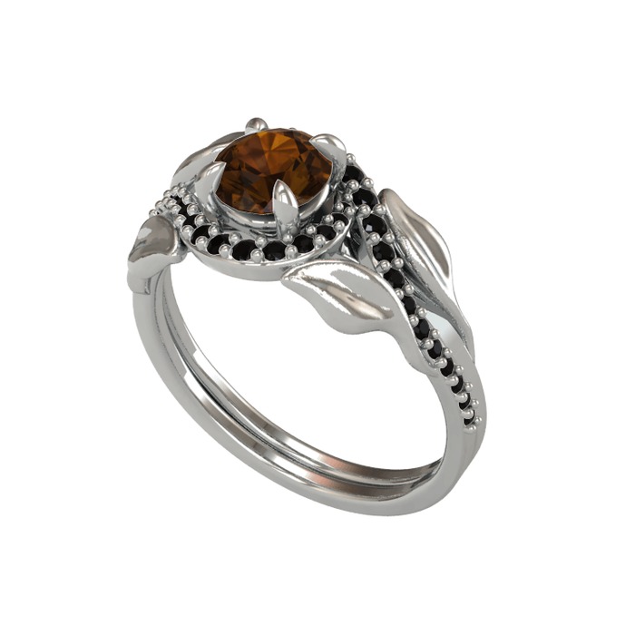 Dumanlı kuvars ve siyah zirkon 14 ayar beyaz altın yüzük