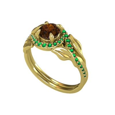 Dumanlı kuvars ve yeşil kuvars 925 ayar altın kaplama gümüş yüzük