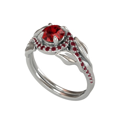 Garnet ve kök yakut 14 ayar beyaz altın yüzük