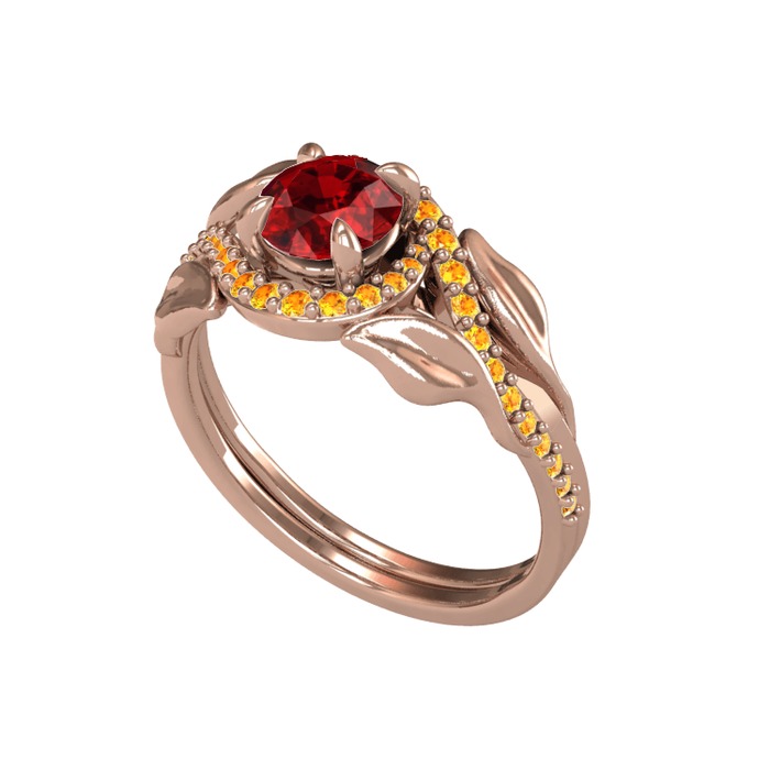 Garnet ve sitrin 925 ayar rose altın kaplama gümüş yüzük