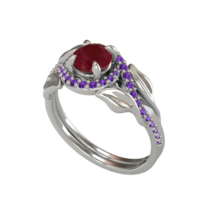 Kök yakut ve ametist 18 ayar beyaz altın yüzük